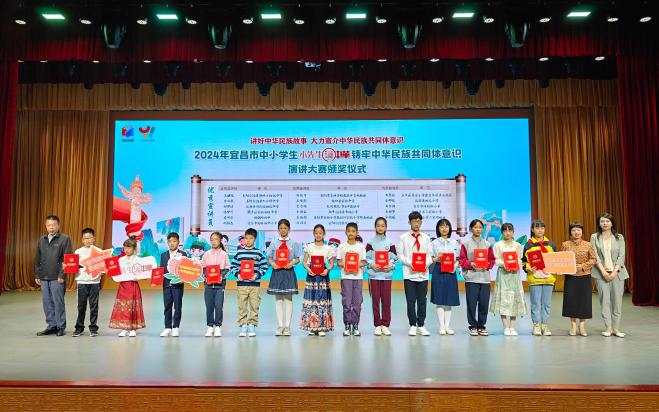 黃黎代表宜昌市分公司為2024年宜昌市中小學(xué)生“小先生 道中華”鑄牢中華民族共同體意識(shí)演講大賽“優(yōu)秀宣講員”頒獎(jiǎng),并向興山縣贈(zèng)送價(jià)值2萬元的主題讀物和優(yōu)秀書籍。