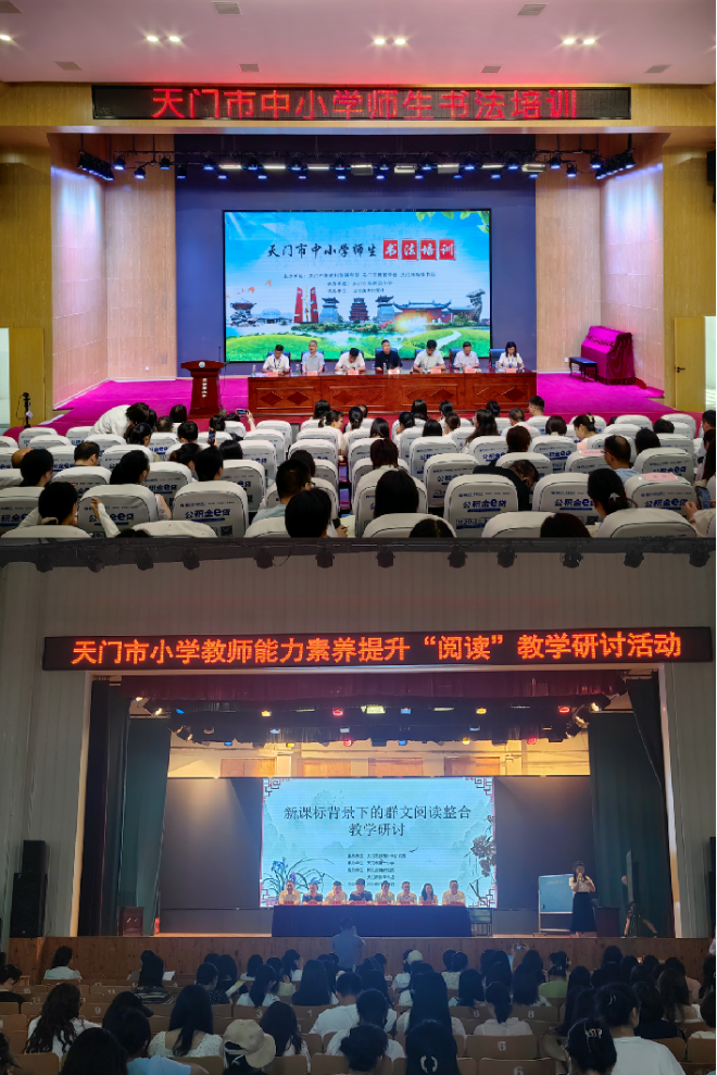 二是在天門市第一小學(xué)舉辦閱讀教學(xué)培訓(xùn)會(huì),全市250名教師參加培訓(xùn)。市第一小學(xué)優(yōu)秀教師李凡以“細(xì)微之處見真情”為題,展示如何以情感為紐帶,引導(dǎo)學(xué)生深入體會(huì)文章的情感深度,展現(xiàn)群文閱讀的獨(dú)特魅力。來自重慶綦江區(qū)沙溪小學(xué)的徐九月和重慶市涪陵區(qū)葉洪林名師工作室的葉洪林兩位老師分別帶來精彩的導(dǎo)讀觀課交流和專題講座,其講解分享讓參訓(xùn)教師收獲頗豐。