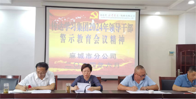 天門、黃石、襄陽、荊州、麻城、崇陽、松滋、浠水、南漳、石首、鄖西、竹溪、蘄春等分公司認(rèn)真?zhèn)鬟_(dá)學(xué)習(xí)新華書店集團(tuán)2024年領(lǐng)導(dǎo)干部警示教育會精神