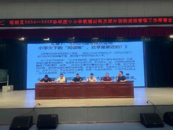 會上,李桂嵩對全縣2024-2025學(xué)年中小教輔材料及課外讀物規(guī)范管理,以及暑期和秋季學(xué)期教輔材料選用工作做了具體安排,要求搶抓期末最后一周左右的時間,重點分別做好暑假作業(yè)、假期讀物的線下訂購和線上預(yù)購工作安排部署;黎燦明以PPT形式,現(xiàn)場分享了2024年高考兩篇有關(guān)“得語文者得天下”的評論文章,強調(diào)了加強閱讀教學(xué)的重要性,對讀物的選用和征訂提出了“把握政策,用智慧去解決問題”的工作觀念;黎桂龍就教輔材料及課外讀物的選用和征訂,從提高認識、科學(xué)管理、履職擔責三個方面進行了強調(diào),要求強化擔當抓好覆蓋率,做到人手一冊;周東波最后要求全縣各學(xué)校一要講政治。要按照政策要求和教育局安排,會后迅速抓好征訂工作落實;二要樹正氣。要從新華書店國有渠道保證教學(xué)用書正版優(yōu)質(zhì)和內(nèi)容安全,嚴禁任何學(xué)?;騻€人擅自向?qū)W生推薦到其他渠道購買指定教輔材料;三要講紀律。要講規(guī)范、講擔當。