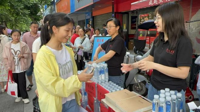 活動現(xiàn)場,分公司員工志愿者們將一瓶瓶倍閱書香礦泉水遞到考生和家長手中,用實際行動傳遞對中考學(xué)子的祝福與支持,鼓勵考生在緊張的考試之余,感受文化的滋養(yǎng)和心靈的慰藉。同學(xué)們在炎熱的夏日收到這樣一份貼心的關(guān)懷,不僅真切體會到來自社會的溫暖,也增強了面對中考的信心和勇氣,紛紛對分公司的熱心服務(wù)表示感謝。