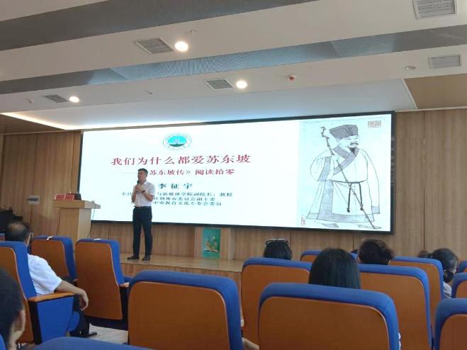 活動(dòng)在悠揚(yáng)的古箏伴奏與蘇軾經(jīng)典詞作《水調(diào)歌頭》的吟唱中緩緩拉開序幕,“明月幾時(shí)有,把酒問青天……”的旋律,瞬間將臺(tái)下聽眾帶入了一個(gè)古典而雅致的氛圍。講座邀請長江大學(xué)人文與新媒體學(xué)院副院長李征宇教授主講,他以“我們?yōu)槭裁炊紣厶K東坡——《蘇東坡傳》閱讀拾零”為引,通過深入淺出的講解與豐富生動(dòng)的分享,引領(lǐng)聽眾踏上一場穿越時(shí)空的文化之旅。淵博的學(xué)識(shí)和生動(dòng)的講述,將蘇東坡的文學(xué)造詣、人生哲理以及那個(gè)時(shí)代的社會(huì)風(fēng)貌娓娓道來,讓聽眾在輕松愉悅的氛圍中感受到了中華文化的獨(dú)特魅力和深厚底蘊(yùn)。