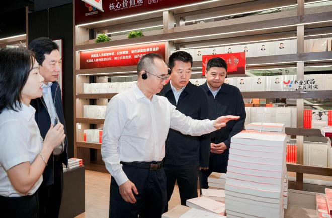 趙軍章一行參觀了屈原書城民族共同體六大展區(qū),對書城利用該平臺傳承與弘揚(yáng)中華優(yōu)秀傳統(tǒng)文化,促進(jìn)各民族文化交流融合之舉給予高度評價(jià)。他指出,屈原書城在挖掘地方文化特色、推動民族團(tuán)結(jié)進(jìn)步方面取得了顯著成效,特別在空間設(shè)計(jì)、氛圍營造及活動體驗(yàn)等方面,巧妙地將民族共同體與書城設(shè)計(jì)融為一體。希望屈原書城后期進(jìn)一步發(fā)揮優(yōu)勢,繼續(xù)深化陣地建設(shè),并借助新媒體力量,加強(qiáng)活動宣傳推廣,提升教育基地的吸引力和影響力,使之成為強(qiáng)化中華民族共同體意識的重要陣地。