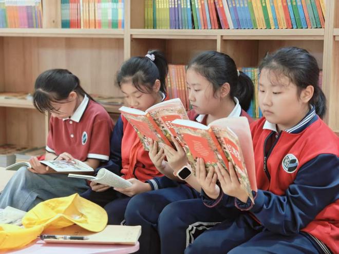 活動(dòng)伊始,孩子們?cè)谶B鎖店自由選擇書(shū)籍進(jìn)行閱讀。他們或坐或立,沉浸在書(shū)海中,時(shí)而低頭沉思,時(shí)而輕聲交流,盡情享受著閱讀帶來(lái)的樂(lè)趣。隨后進(jìn)行的讀書(shū)分享環(huán)節(jié),孩子們用真摯的語(yǔ)言分享閱讀感悟,展現(xiàn)豐富的想象力和思考力。學(xué)校校長(zhǎng)王平勇陪同孩子們一起閱讀,滿懷深情地回憶起自己兒時(shí)對(duì)于閱讀的深切渴望,以及職業(yè)生涯中閱讀《教育論》所獲得的深刻啟示。他勉勵(lì)孩子們珍視每一次閱讀的機(jī)會(huì),用心去體會(huì)文字背后的力量,讓閱讀成為伴隨自己成長(zhǎng)道路上的智慧燈塔和良師益友。