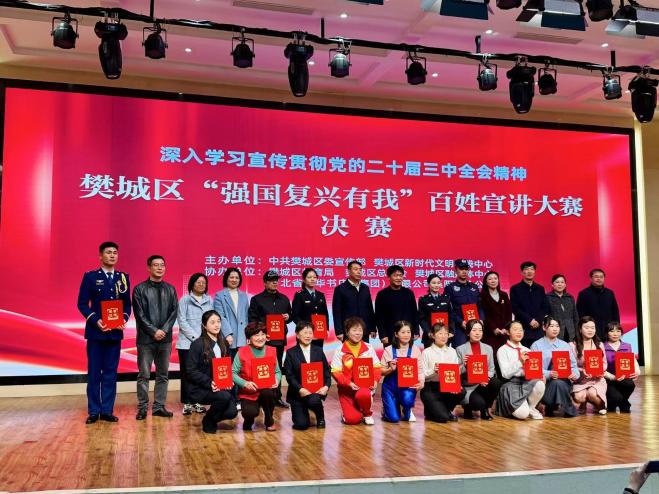 此次“強國復(fù)興有我”百姓宣講大賽決賽的成功舉辦,不僅為樊城區(qū)廣大黨員干部群眾提供了一個展示自我、交流學(xué)習(xí)的平臺,也進(jìn)一步推動了黨的二十屆三中全會精神在樊城區(qū)的深入宣傳和廣泛實踐。下一步,分公司將繼續(xù)拓展服務(wù)形式,創(chuàng)新活動內(nèi)容,充分發(fā)揮新華書店文化服務(wù)的主渠道、主陣地作用,為襄陽文化建設(shè)和經(jīng)濟(jì)社會發(fā)展貢獻(xiàn)更多力量。(通訊員 任夢圓)