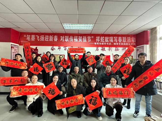 1月20日下午,棗陽(yáng)市分公司聯(lián)合市煙草專(zhuān)賣(mài)局在連鎖店舉辦“祥蛇獻(xiàn)瑞寫(xiě)春聯(lián)”活動(dòng),吸引眾多市民讀者參與。
