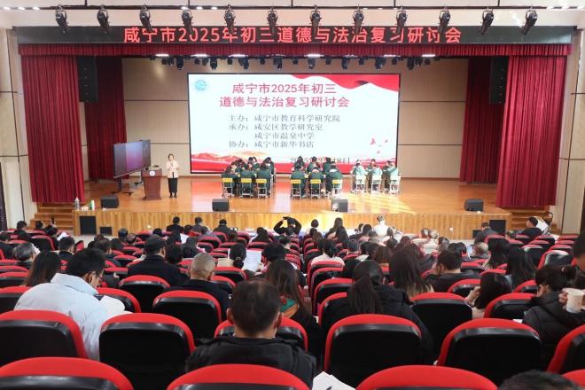 3月18日上午,“咸寧市 2025 年初三《道德與法治》復(fù)習(xí)研討會(huì)”在溫泉中學(xué)學(xué)術(shù)報(bào)告廳舉辦,標(biāo)志著咸寧市2025年中考復(fù)習(xí)研討活動(dòng)正式啟動(dòng)。本次研討會(huì)由咸寧市教育科學(xué)研究院主辦,新華書(shū)店咸寧市分公司協(xié)辦。研討會(huì)采用全市聯(lián)動(dòng)模式,后期將在通城、崇陽(yáng)、通山三個(gè)縣域聯(lián)動(dòng)開(kāi)辦5場(chǎng)學(xué)科專題研討會(huì)。