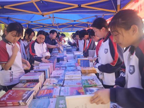 此次書展共展出3000余冊精品圖書,涵蓋文學(xué)、科普、歷史等多個領(lǐng)域。既有剖析人類發(fā)展進(jìn)程的《人類簡史》,也有充滿科幻色彩的《三體》;既能從《蘇東坡傳》中領(lǐng)略文人的獨(dú)特風(fēng)骨,也能在各類科普讀物里探索奇妙的科學(xué)世界,充分滿足師生們多樣化的閱讀需求。在擺放整齊的書臺前,同學(xué)們紛紛駐足挑選,有的神情專注沉浸于閱讀,有的三三兩兩相互輕聲交流,有的因找到喜愛的書籍而面露欣喜……現(xiàn)場書香濃郁,熱鬧非凡。