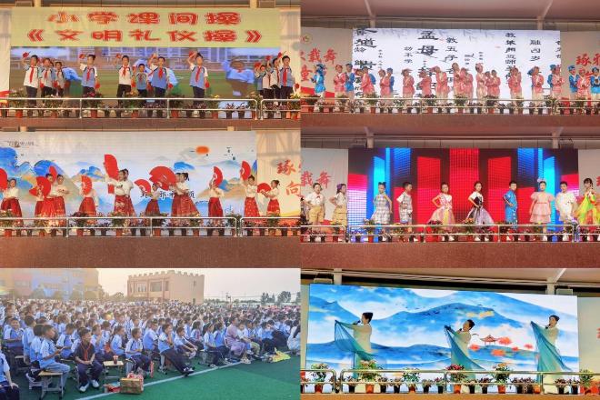當(dāng)晚的演出形式多元,涵蓋舞蹈、朗誦、小品、走秀、器樂(lè)演奏等19個(gè)師生節(jié)目。其中《文明禮儀操》手勢(shì)舞,將日常行為規(guī)范與韻律節(jié)奏相結(jié)合,孩子們整齊的動(dòng)作中傳遞著《青少年文明禮儀》中的核心內(nèi)涵,讓文明素養(yǎng)以可視化的方式浸潤(rùn)童心;古詩(shī)《三字經(jīng)》誦讀,搭配古韻十足的肢體語(yǔ)言,將經(jīng)典蒙學(xué)讀物的朗朗上口與文化底蘊(yùn)展現(xiàn)得淋漓盡致,引得臺(tái)下師生大聲跟誦,形成共讀經(jīng)典的溫馨場(chǎng)景。此外,環(huán)保時(shí)裝秀、舞蹈劇《新長(zhǎng)征路上的我們》等節(jié)目,也從不同角度呼應(yīng)了環(huán)保科普、紅色教育等主題讀物,讓書本知識(shí)在舞臺(tái)上“活”了起來(lái)。
