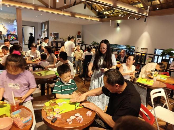 活動(dòng)現(xiàn)場,分公司連鎖店內(nèi)洋溢著濃濃的節(jié)日氣氛和艾草的獨(dú)特清香。非遺傳承人為親子講解艾草香料的歷史淵源、文化內(nèi)涵和制作技巧;親子協(xié)作,大手小手將香料沾水揉捻塑形,沉浸體驗(yàn)非遺魅力,讓文化在掌心鮮活流轉(zhuǎn)。