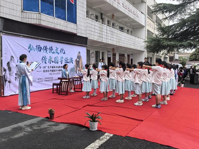 活動在茨河鎮(zhèn)中心學(xué)校領(lǐng)導(dǎo)熱情洋溢的致辭中拉開帷幕。隨后,現(xiàn)場舉行了莊重而富有儀式感的“行拜師禮”環(huán)節(jié),學(xué)生們通過傳統(tǒng)禮儀,深刻感悟尊師重道的中華美德。在經(jīng)典的誦讀聲中,全體參與者齊聲誦讀《論語》精選篇章,瑯瑯書音回蕩在校園,先賢的智慧跨越時空浸潤心田。緊接著,手勢舞《孔夫子的話》以新穎活潑的形式演繹了國學(xué)精髓,而情景劇《和孔子的對話》則通過古今對話的創(chuàng)意編排,生動展現(xiàn)了孔子思想的時代價值,將現(xiàn)場氣氛推向高潮?;顒幼詈?,分公司及相關(guān)單位為積極參與活動的學(xué)生們頒發(fā)獎品,鼓勵同學(xué)們持續(xù)閱讀,傳承經(jīng)典。