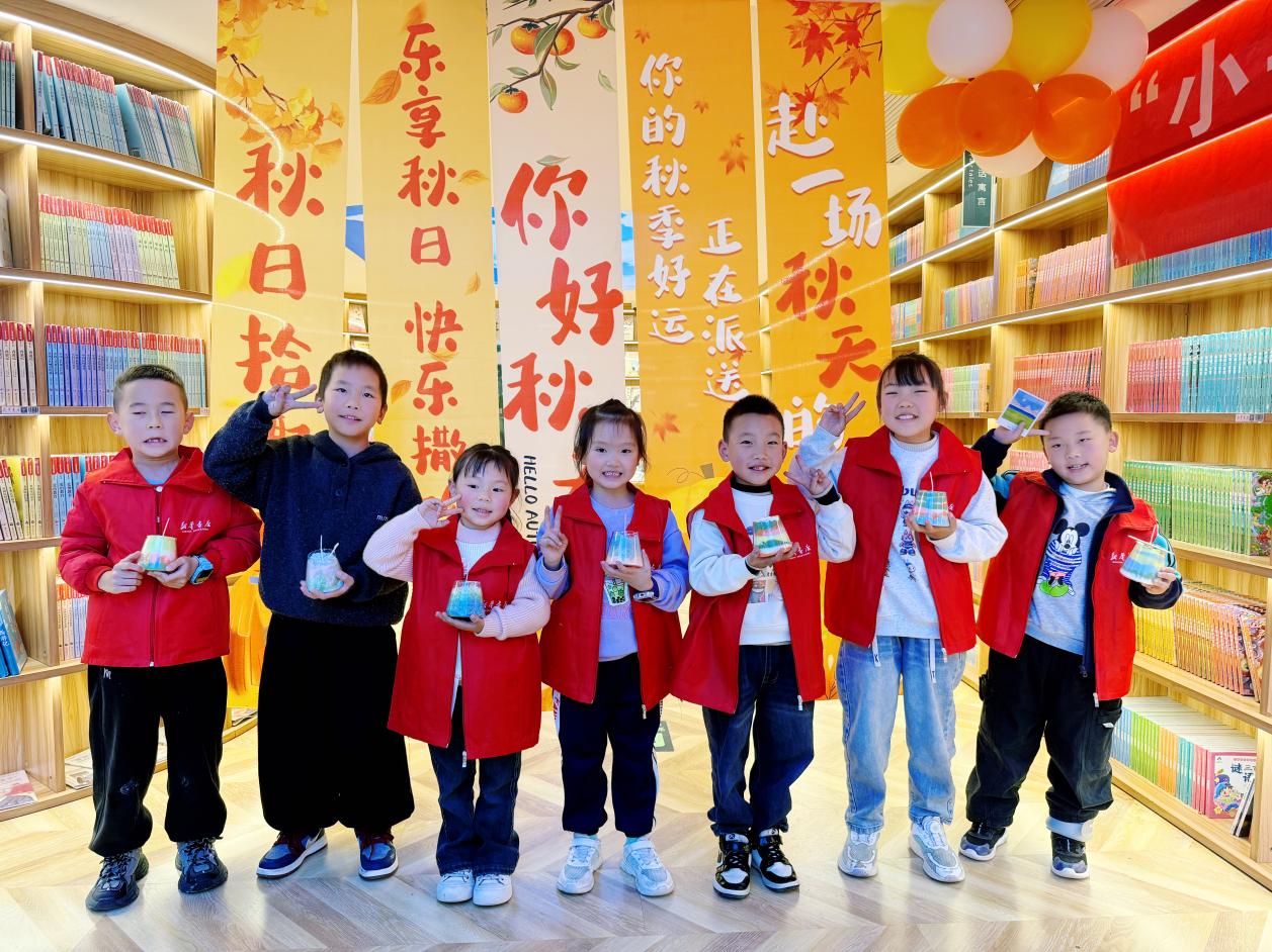 來到繪本館,秋日的元素如詩般散落——楓葉掛飾、秋日農(nóng)作物擺件、纏繞的銀杏葉,孩子們化身"秋日偵探",在書架間尋找與季節(jié)對話的線索。"這片銀杏葉像不像小船?""這本書里的插畫有稻田的味道!"當稚嫩的聲音在書頁間回響,觀察力、表達力與邏輯思維的種子悄然生根。"秋日故事"的互動如漣漪般蕩開,孩子們用想象編織著屬于自己的季節(jié)敘事。尋找秋日元素最多的小偵探,捧著精美禮品笑靨如花,而文學與藝術(shù)的交融,早已在他們心中種下對自然與生活的熱愛。