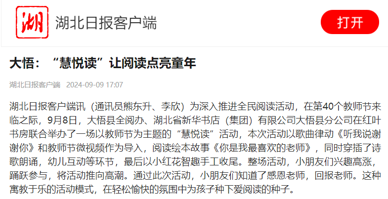 湖北日報(bào)客戶端?大悟:“慧悅讀”讓閱讀點(diǎn)亮童年