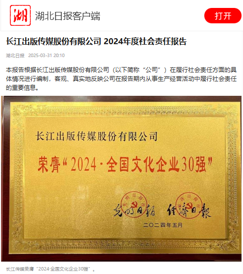 湖北日報客戶端 | 長江出版?zhèn)髅焦煞萦邢薰?2024年度社會責任報告