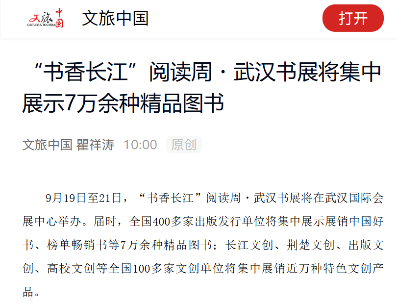 文旅中國 | 書香長江”閱讀周?武漢書展將集中展示7萬余種精品圖書