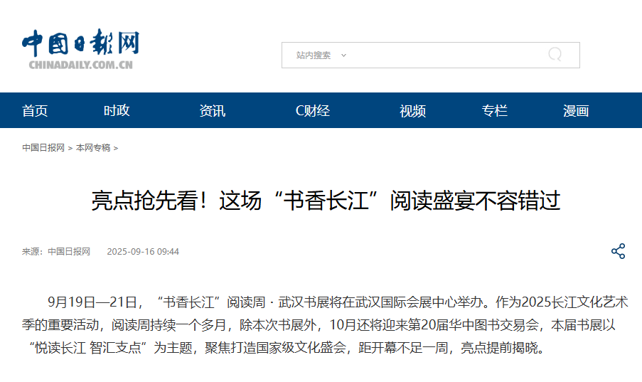 中國日報網(wǎng) | 亮點搶先看!這場“書香長江”閱讀盛宴不容錯過