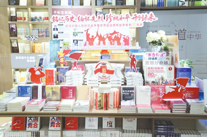 宜昌市新華書店·屈原書城內(nèi)特設(shè)“紀念中國人民抗日戰(zhàn)爭暨世界反法西斯戰(zhàn)爭勝利80周年”主題展區(qū)。