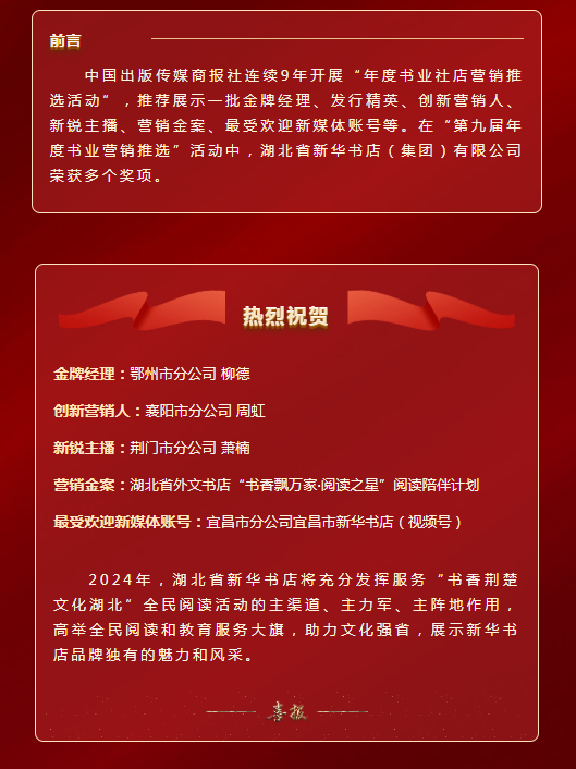 喜報(bào)|湖北省新華書店在“2023年度書業(yè)營銷推展發(fā)布”再創(chuàng)佳績!