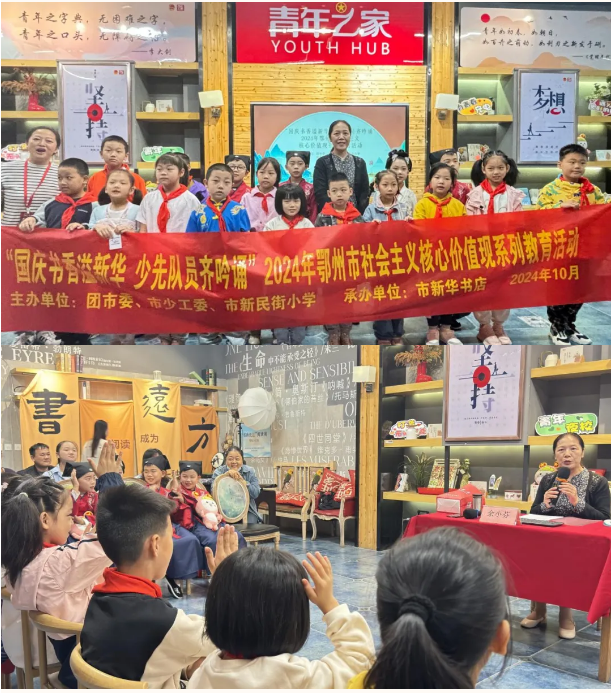 10月7日,鄂州書城聯(lián)合市團市委、少工委、市新民街小學(xué)舉辦“國慶書香溢新華,少先隊員齊吟誦”活動。